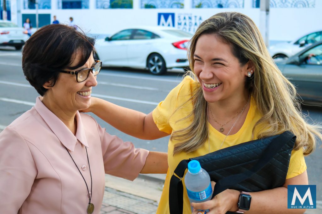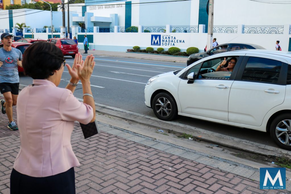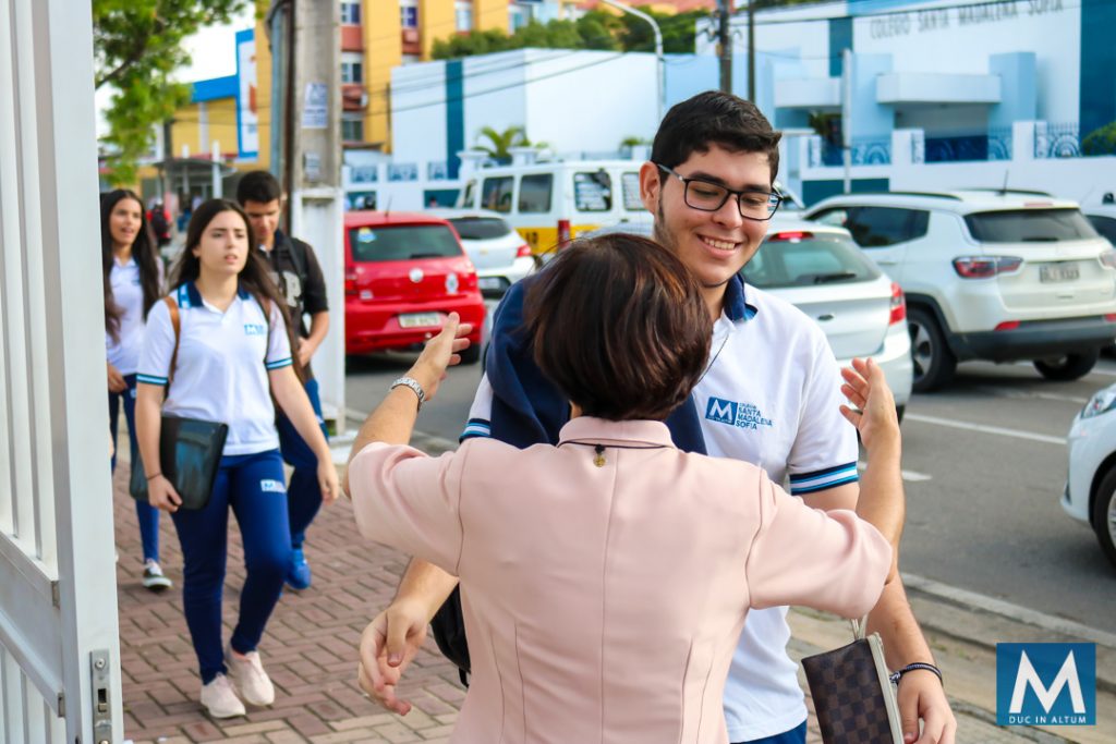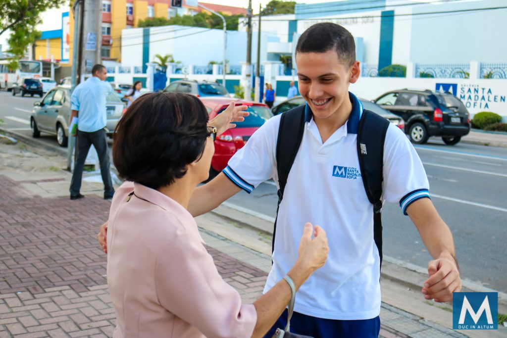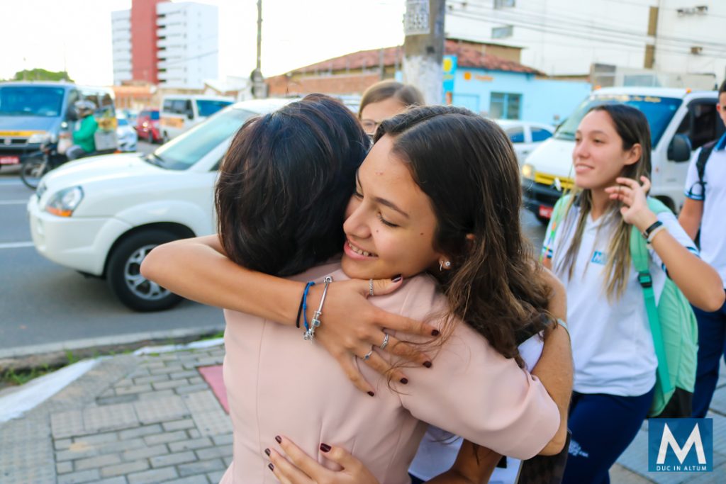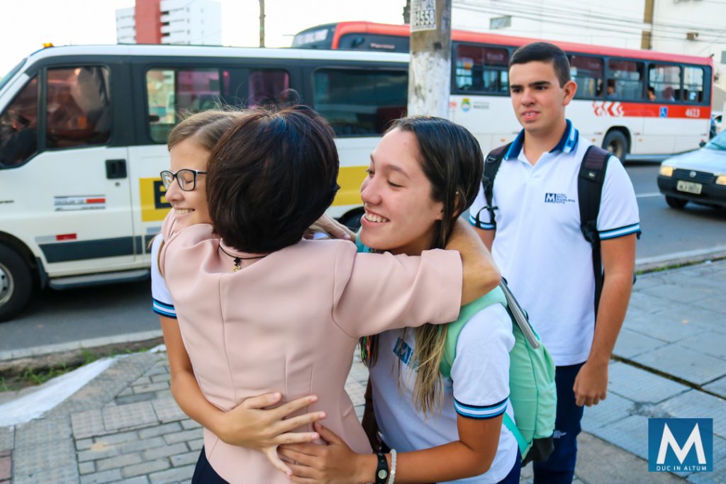 Acolher é receber cada um com um abraço, reafirmando o carisma de Madre Agathe Verhelle de dedicar-se e consagrar-se inteiramente à juventude.